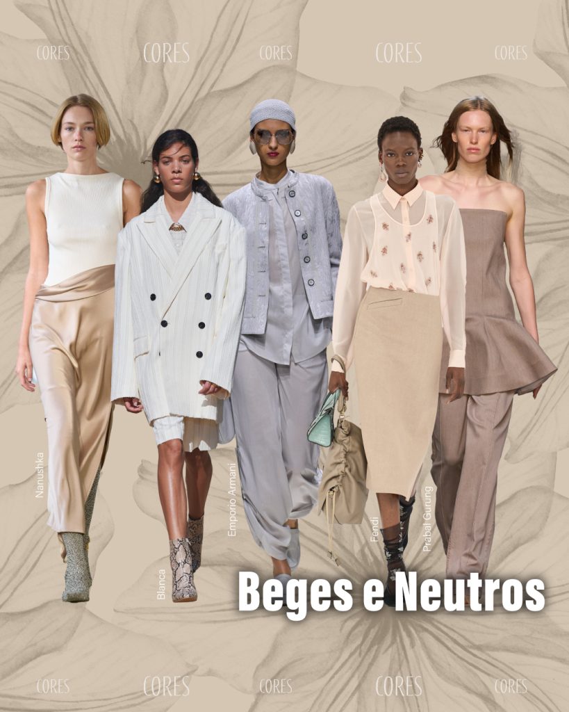 - Neutros atualizados: off-white, nude rosado, bege acinzentado e tons leitosos.