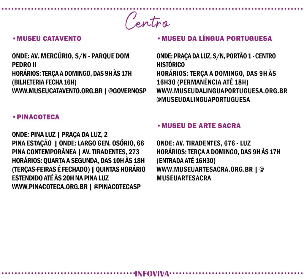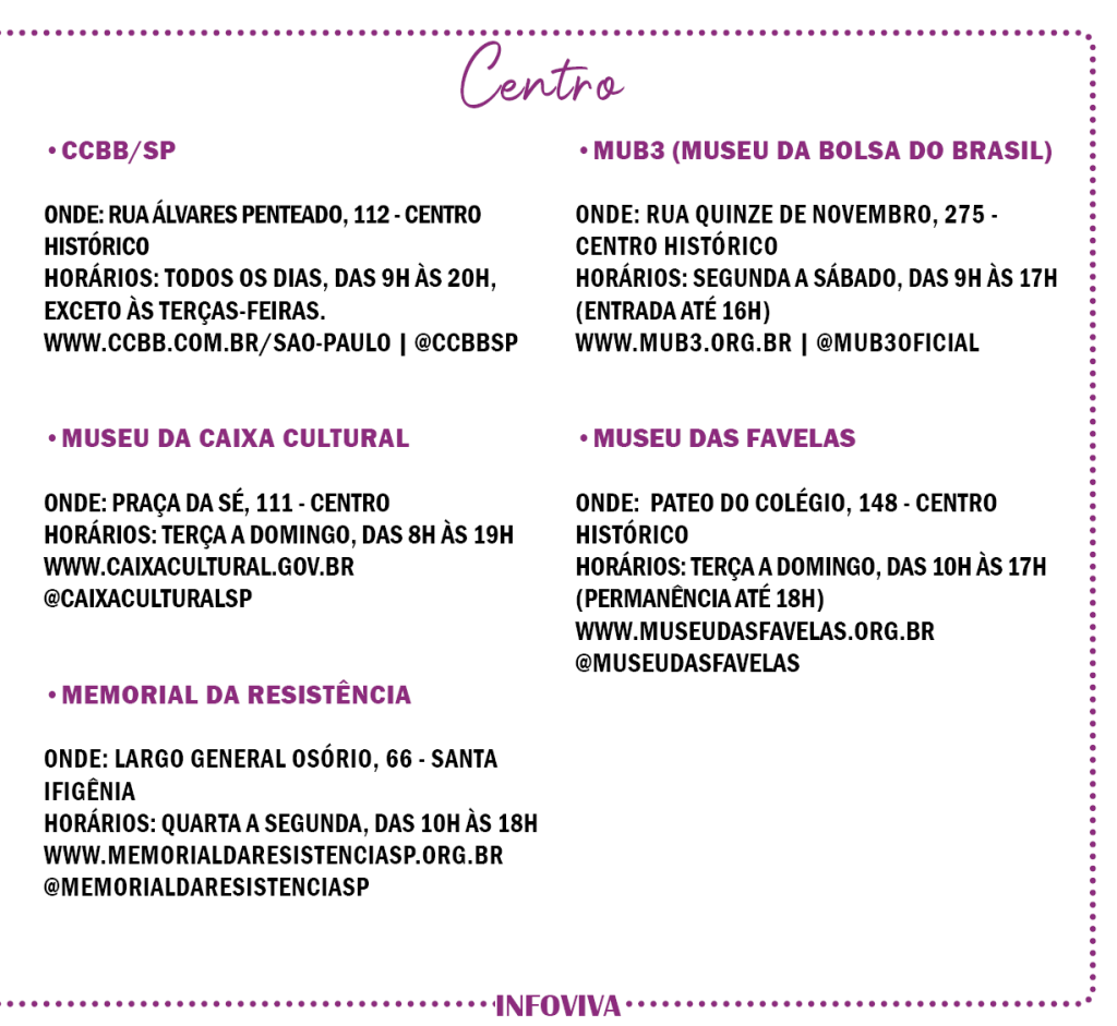 Gratuidade: aos sábados e no 3º domingo de cada mês, nos três edifícios