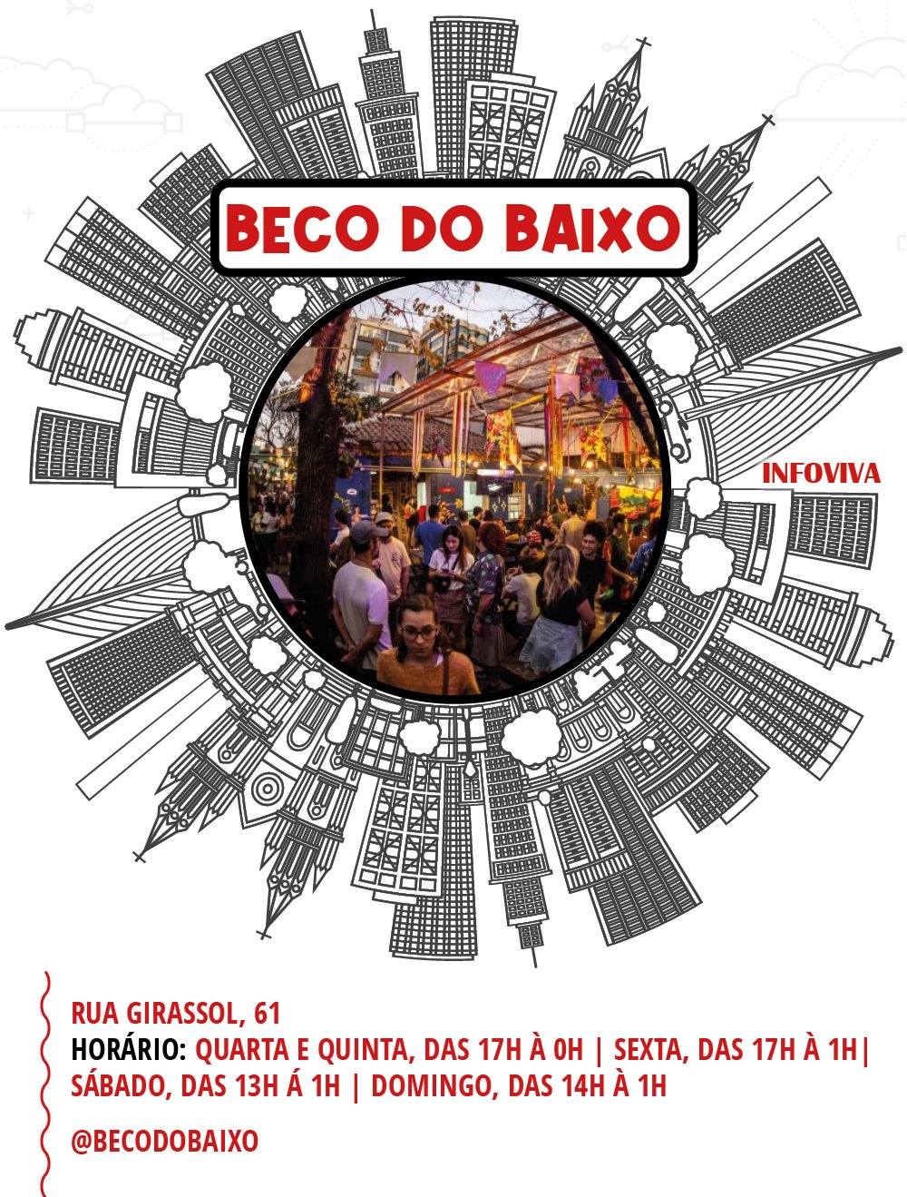 Localizado no centro da Vila Madalena, o Beco do Baixo é um espaço multicultural que oferece deliciosos pratos, petiscos, ótimos drinks e diversas bebidas. Muito animado, o espaço é descolado e sempre conta com muito samba. Além disso, tem entrada gratuita e preços acessíveis.