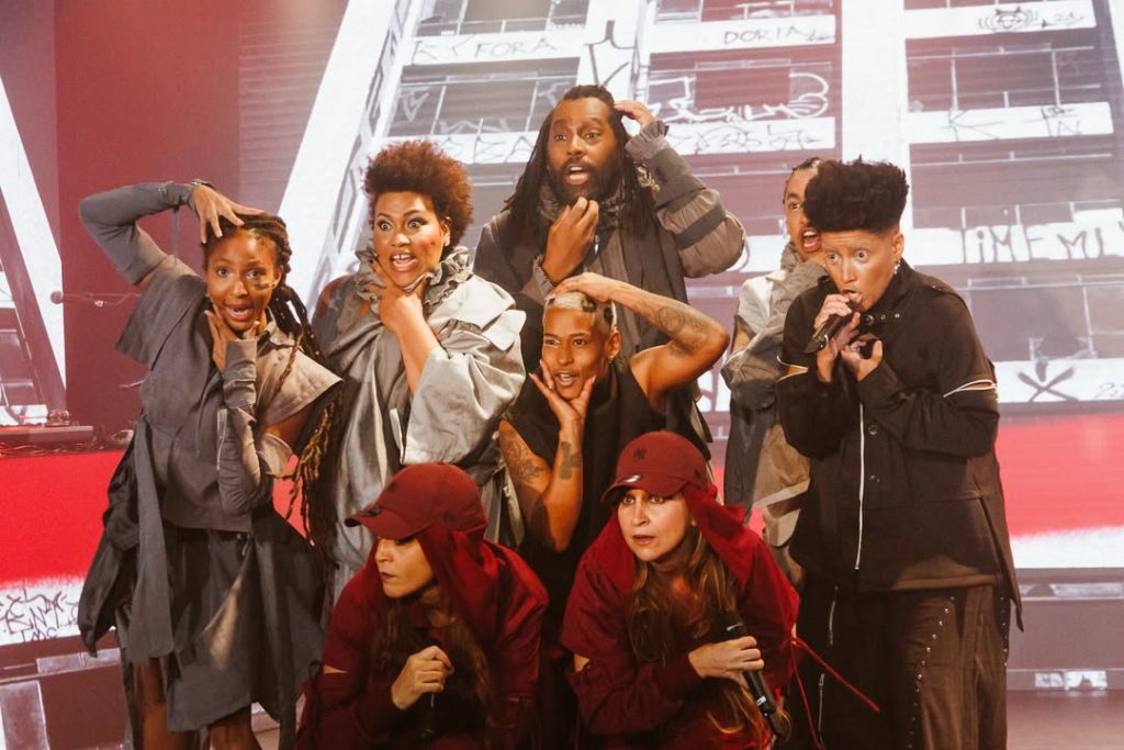 O elenco de “Hip Hop Hamlet”. | Foto: Julio Leão.