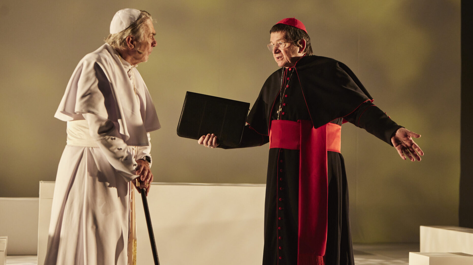 Zécarlos Machado e Celso Frateschi em “Dois Papas”. Foto: Ale Catan