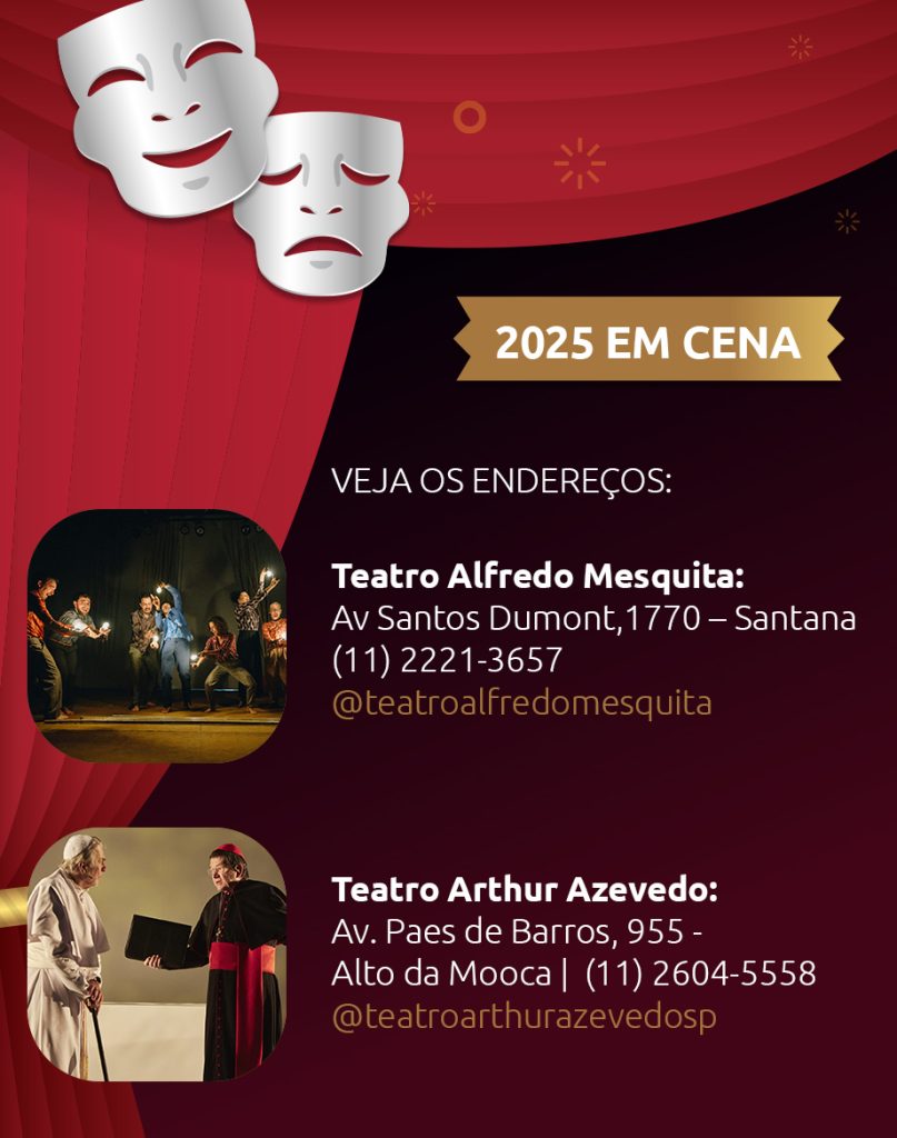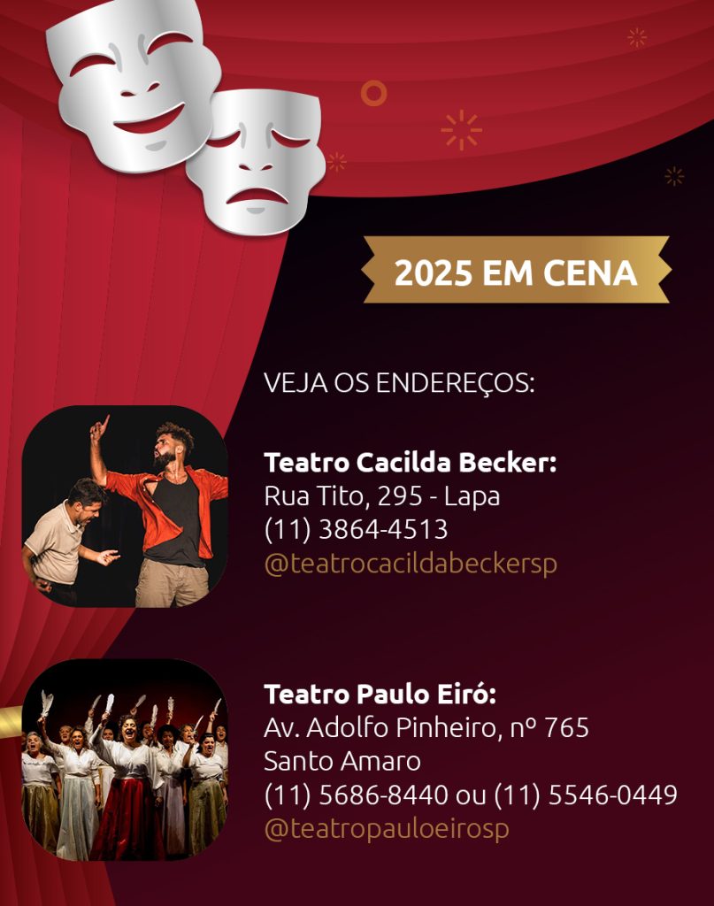 Realizada pela prefeitura de São Paulo, por meio da Secretaria de Cultura e Economia Criativa, a Mostra “2025 em Cena” apresenta 21 espetáculos, em quatro teatros da capital, entre os dias 5 e 21 de dezembro.