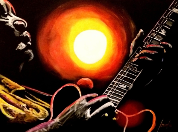 Exposição traz 19 telas que foram pintadas durante shows de blues e jazz e elaboradas em tempo recorde