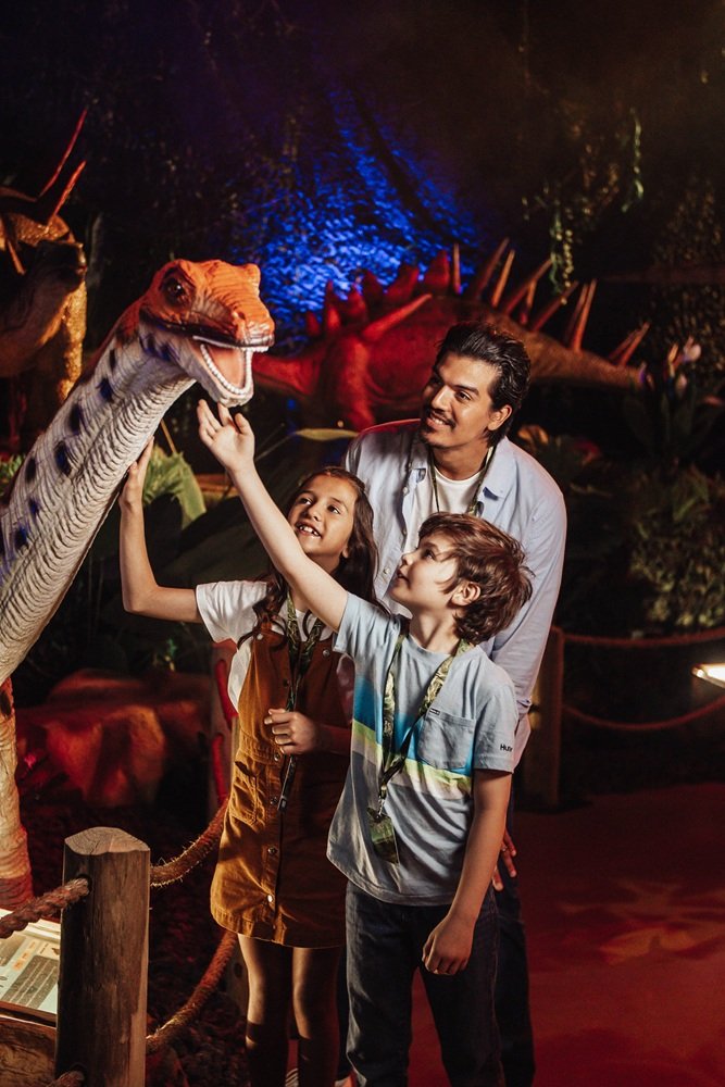 Após temporadas de sucesso na Europa, Ásia e Estados Unidos, a exposição desembarca pela primeira vez no país, trazendo ao público brasileiro um percurso imersivo que transporta os visitantes ao período jurássico. Ao longo da experiência, é possível conhecer de perto espécies icônicas como o Tiranossauro Rex, Estegossauro, Anquilossauro e Velociraptor, entre outros gigantes que habitaram a Terra há milhões de anos.