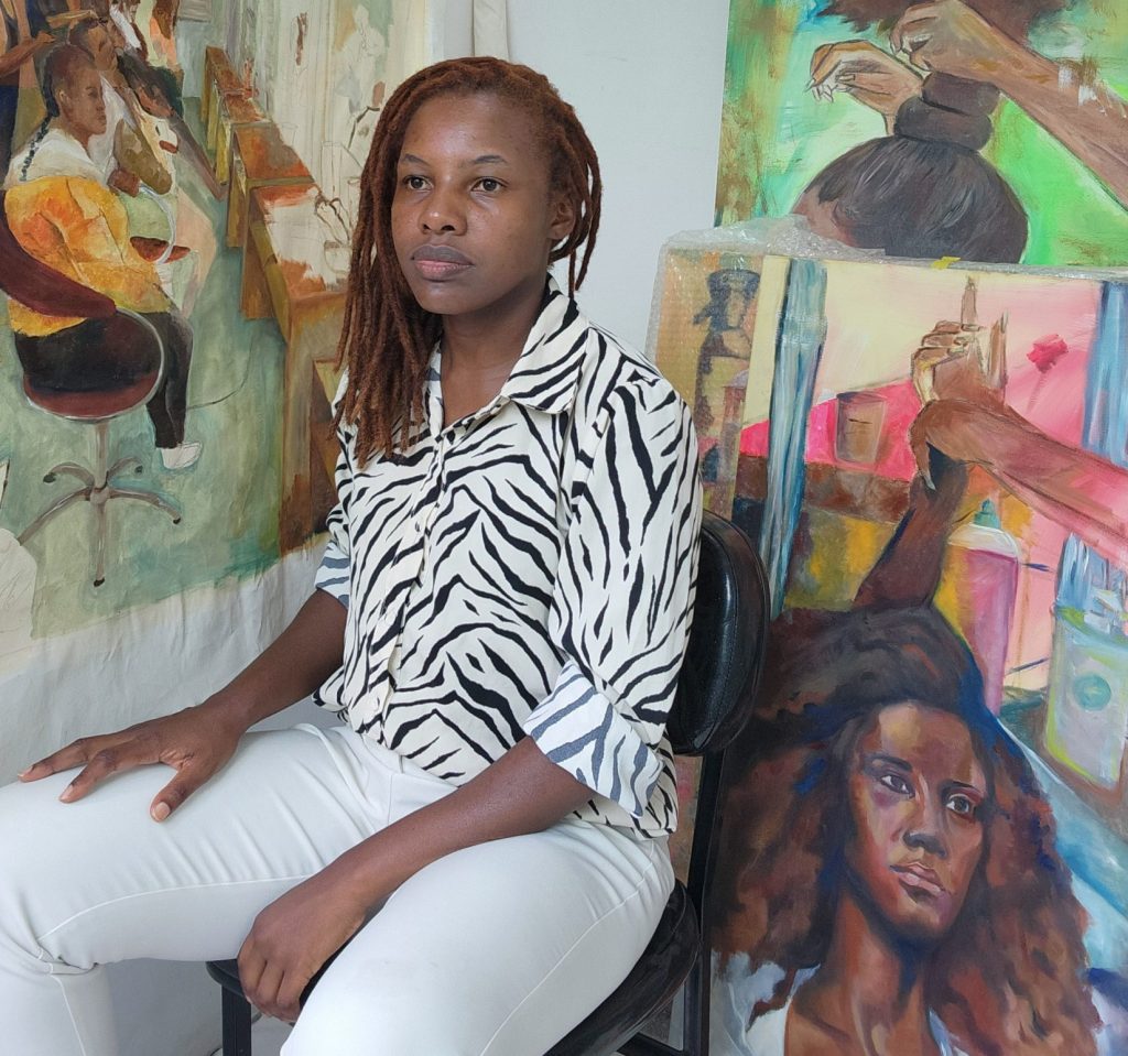 A série “Diálogos de Salão” amplia essa discussão ao trazer o salão de beleza como espaço de sociabilidade, escuta e transmissão de saberes. Ao inserir esse ambiente no contexto expositivo, Suelen tensiona os limites entre arte institucional e práticas historicamente invisibilizadas.