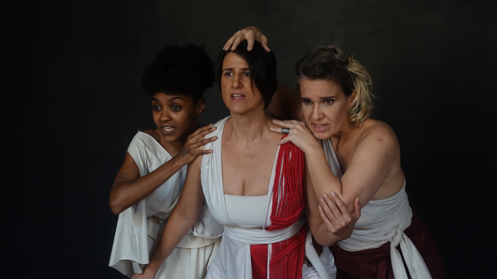 No palco, Moira divide a cena com Luize Mendes Dias, atriz e intérprete de Libras, e com a multi-instrumentista Isadora Medella. As três realizam audiodescrição e Libras em cena, de forma integrada às ações, aos gestos e à composição dramatúrgica. Essa abordagem amplia a noção tradicional de acessibilidade, transformando-a em linguagem artística e em uma experiência compartilhada entre públicos com e sem deficiência.