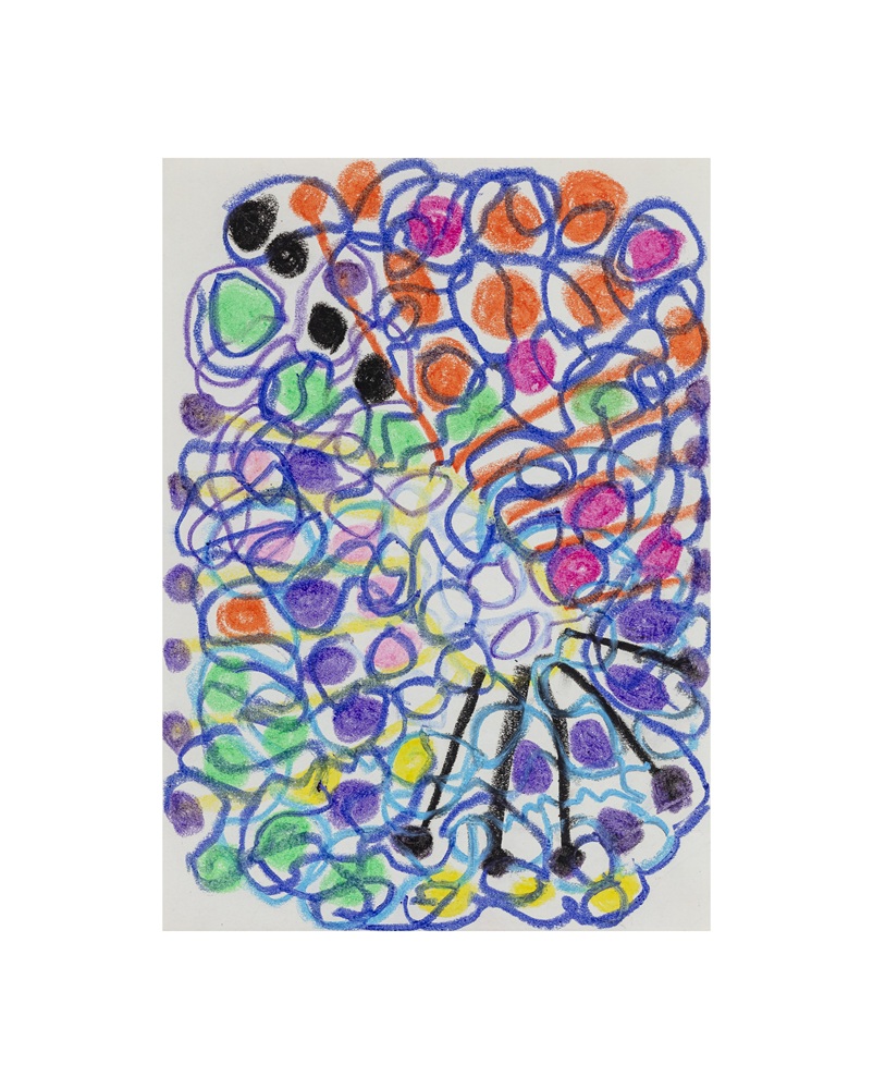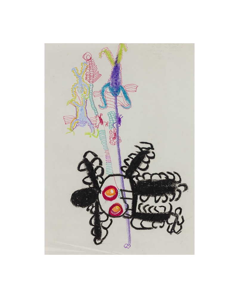 O segundo núcleo é formado por 78 obras inéditas da coleção do antropólogo francês Bruce Albert, conhecido por suas contribuições ao estudo dos Yanomami e coautor de “A Queda do Céu: Palavras de um Xamã Yanomami”. As peças de 1978, elaboradas com pastel oleoso e caneta hidrográfica, apresentam composições mais abstratas e cores vibrantes, ampliando a percepção da riqueza cultural e artística yanomami.
