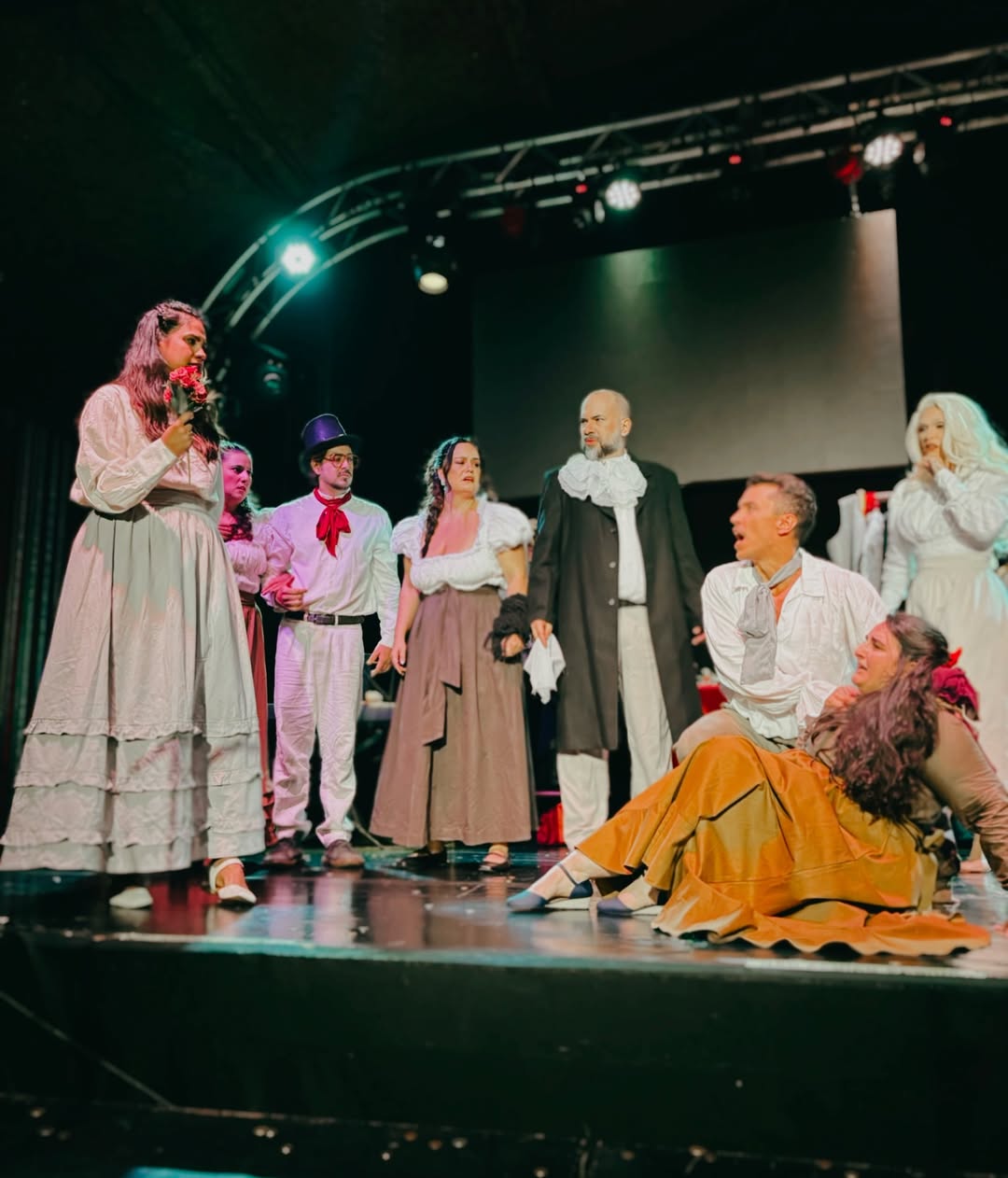 Aqui, o público tem voz (e arremesso): bolas de meia voam em direção aos atores quando a cena não agrada; moedas são lançadas ao palco em sinal de aprovação. O destino dos personagens está literalmente nas suas mãos. Com figurinos de época, trilha sonora executada ao vivo e iluminação improvisada em cena, “Melodrama da Meia-Noite” celebra um teatro popular, afetuoso e inteligente que honra suas raízes históricas ao mesmo tempo em que dialoga com o presente por meio do jogo, da musicalidade e da improvisação.