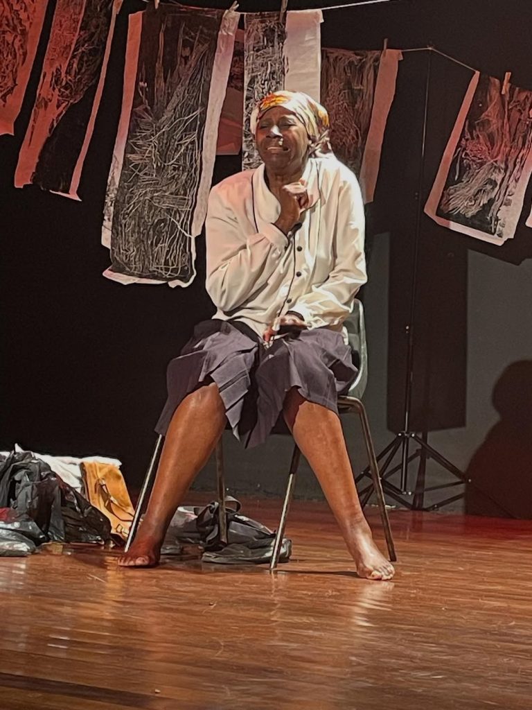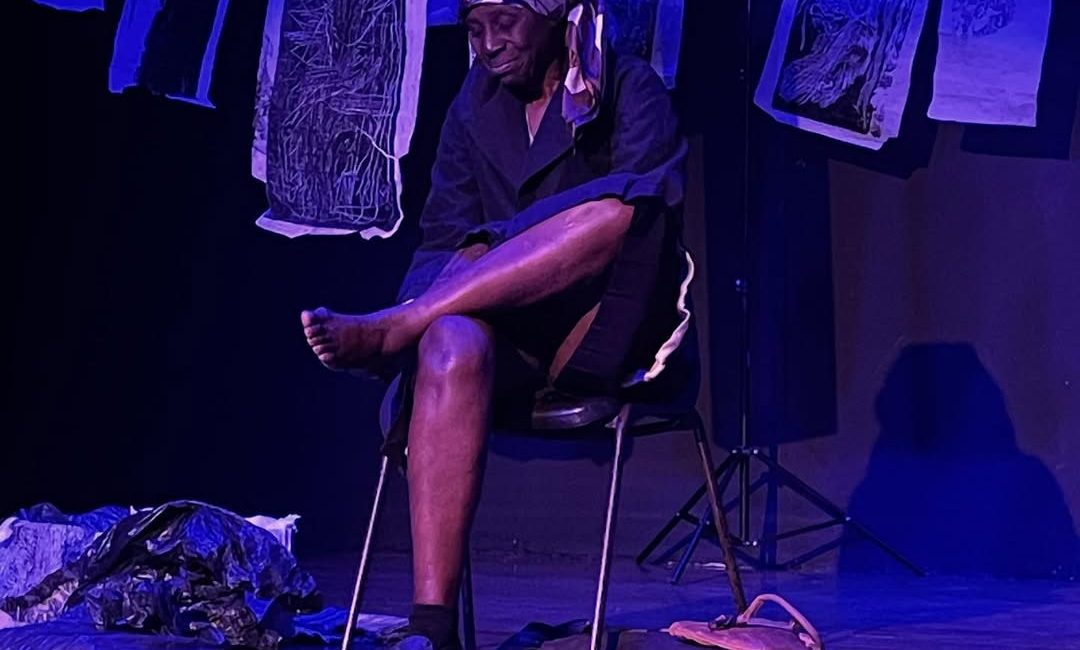 Cena da peça “Eu e Ela: Visita à Carolina Maria de Jesus”. Foto: Reprodução / @invasoresteatronegro