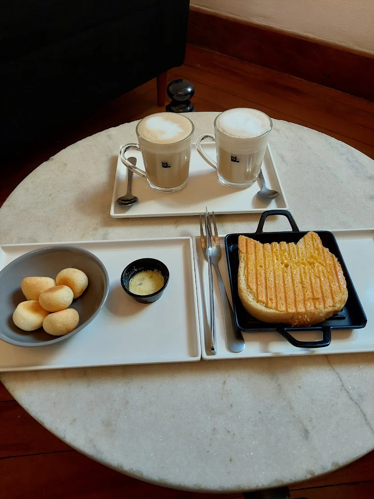 No cardápio, os visitantes encontram desde o clássico pingado, a tradicional combinação de café com leite, até expressos, cappuccinos, chás, chocolates quentes e bebidas sazonais criativas. Para acompanhar, há opções de bolos, cookies, e o famoso tostex em formato de gato, além de brunches nos fins de semana.