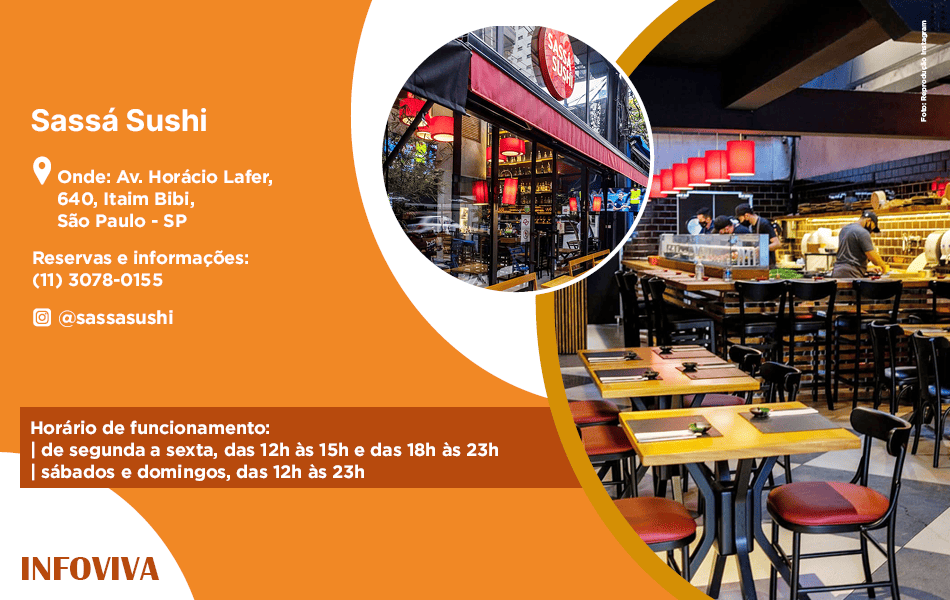 O Sassá Sushi, renomado restaurante japonês localizado no Itaim Bibi, criou preparou três formatos de celebração voltados a grupos a partir de 10 pessoas, ideais para encontros de fim de ano. Cada menu (Isakaya, Okosho e Akasaka) inclui um conjunto amplo de bebidas, entre sucos, refrigerantes, água, cervejas como Stella Artois, Beck’s, Corona e Heineken, além de coquetéis como Sassákeritas, Aperol Spritz, gin tônica Tanqueray, mojito, Moscow Mule e Negroni. Os valores variam entre R$ 290 e R$ 390 por pessoa, acrescidos de 12% de serviço.