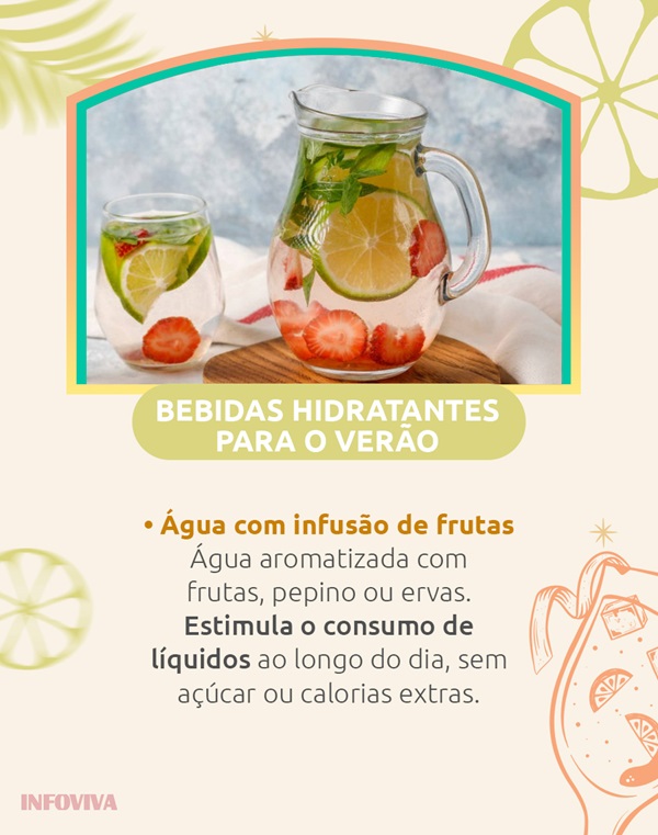 No verão, hidratar-se bem é essencial para manter energia, bem-estar e saúde. Variar as bebidas ajuda o corpo a enfrentar o calor com mais equilíbrio. Conheça opções de bebidas refrescantes para ajudar a enfrentar os dias quentes: