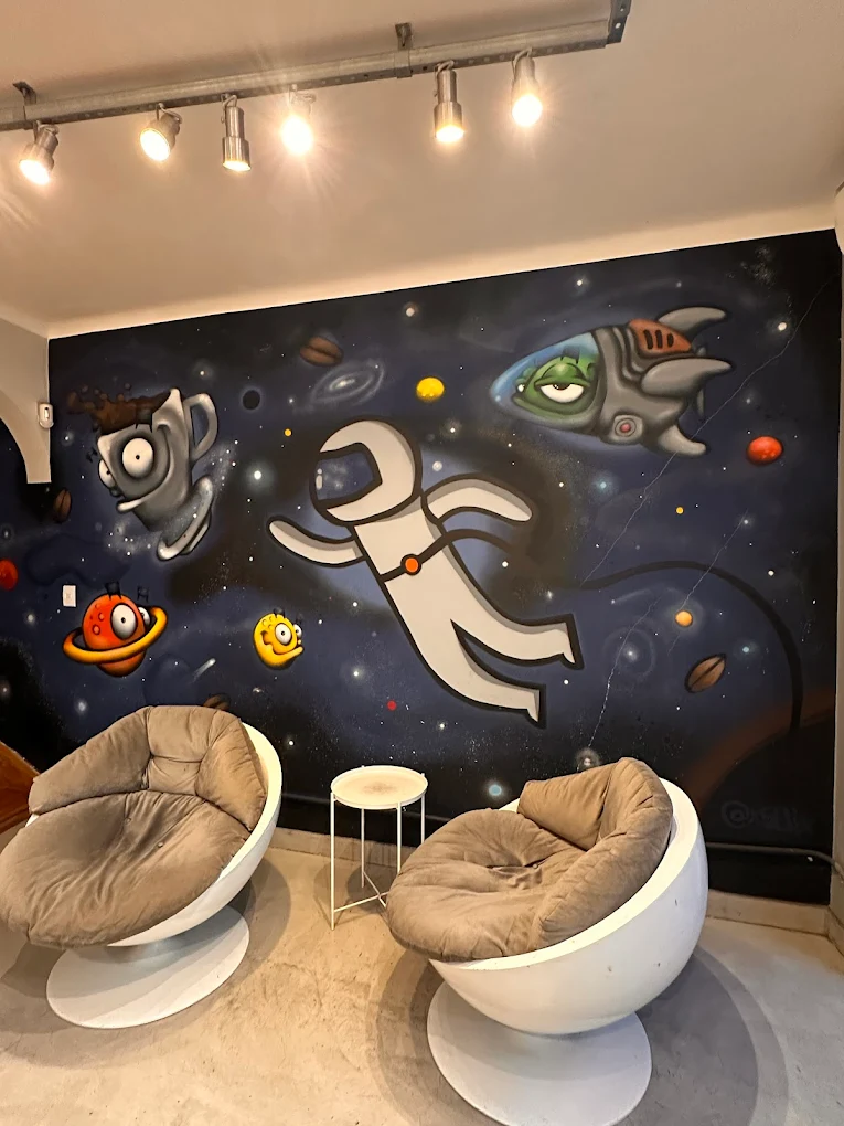 O Astronauta Café, na Vila Mariana, é uma cafeteria que se destaca pelo ambiente criativo e acolhedor. Inspirado no universo espacial, o espaço aposta em uma decoração moderna e descontraída, criando uma atmosfera leve e diferente, perfeita tanto para momentos de descanso quanto para quem precisa trabalhar ou estudar. Com mesas confortáveis, Wi-Fi e cantinhos mais tranquilos, o local atrai muitos estudantes e pessoas em home office.