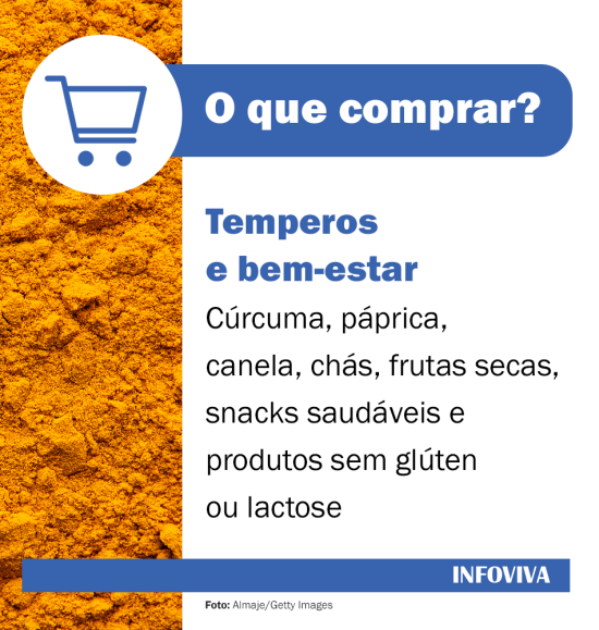 Entre os itens mais procurados estão aveia, quinoa, chia, linhaça, castanha-do-pará, amêndoas, nozes, uva-passa, damasco seco, cúrcuma, páprica, granola, melado e farinhas de amêndoas ou coco.