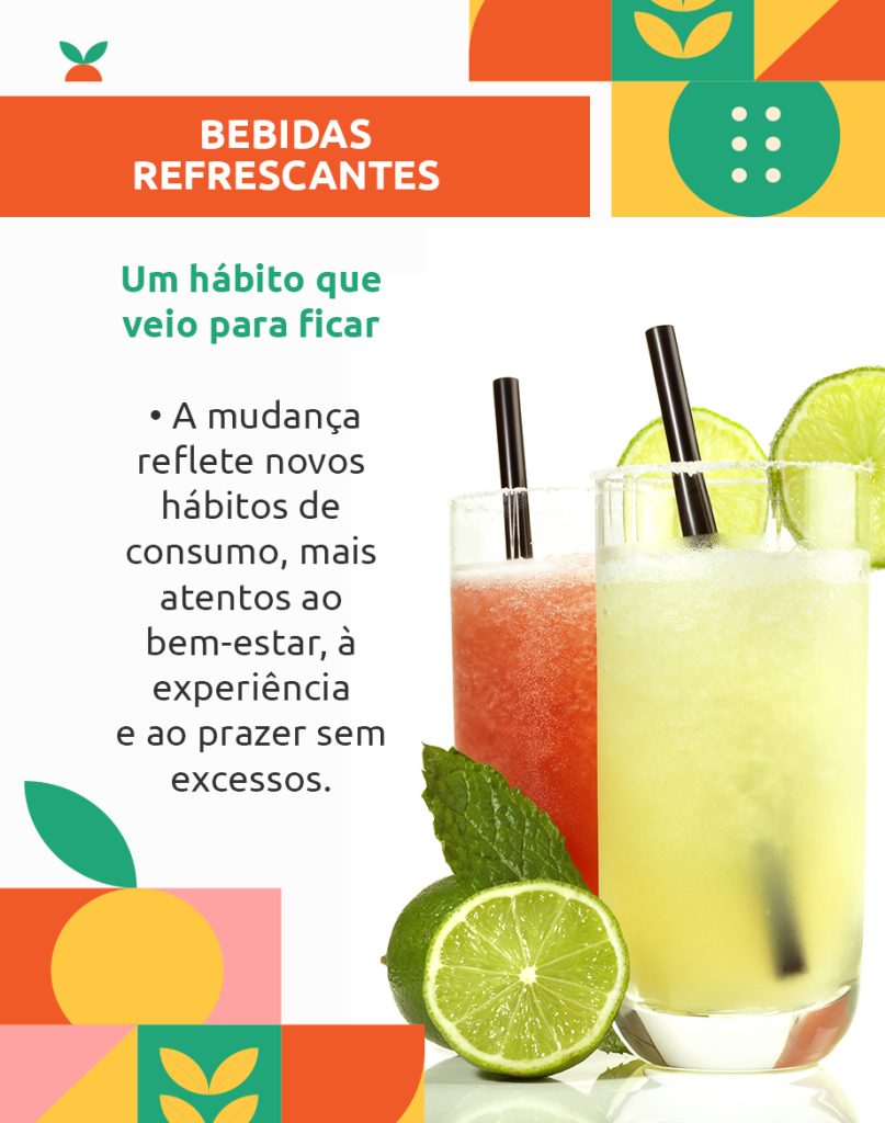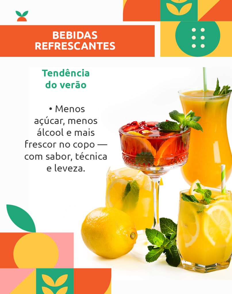 As sodas italianas seguem como escolha clássica e refrescante, valorizando frutas, ervas e água gaseificada, enquanto os smoothies combinam hidratação e energia, ideais para pausas ao longo do dia.