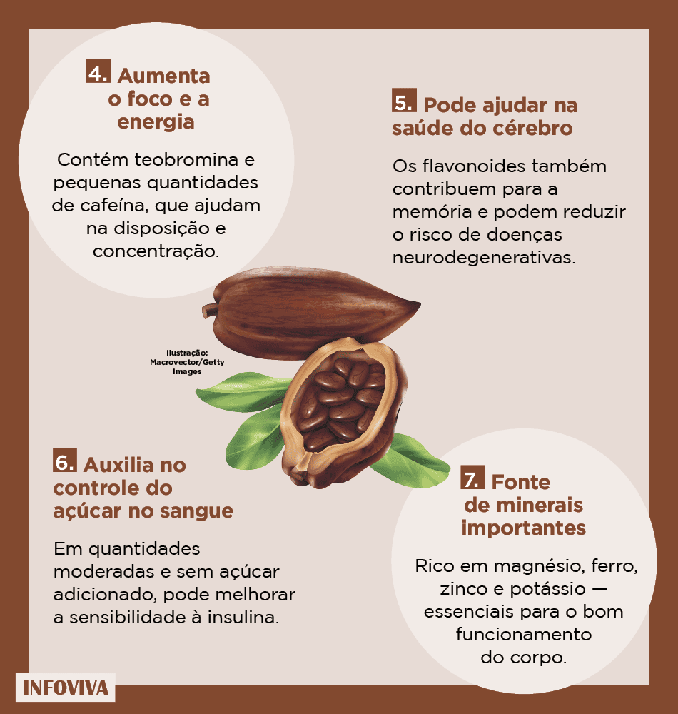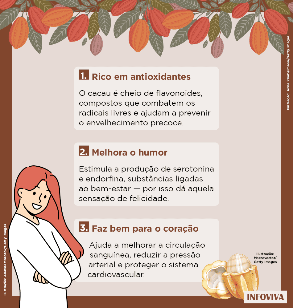 O cacau oferece diversos benefícios à saúde. Veja alguns deles abaixo:
