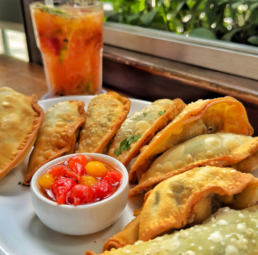 Dentro dessa proposta inovadora, um dos itens que mais chamam a atenção no menu é o Pastel de Lomo. A preparação leva no recheio o icônico lomo saltado, prato emblemático do Peru que combina tiras de carne salteadas rapidamente em fogo alto com cebola roxa, tomate, pimentão e temperos marcantes. Essa mistura, suculenta e aromática, é envolta por uma massa fina e crocante, resultando em uma versão sofisticada e inusitada do tradicional pastel. Para completar a experiência, o prato é servido ao lado de uma maionese de pimenta sriracha, cremosa e levemente picante, que intensifica o sabor e cria um contraste delicioso com o recheio.