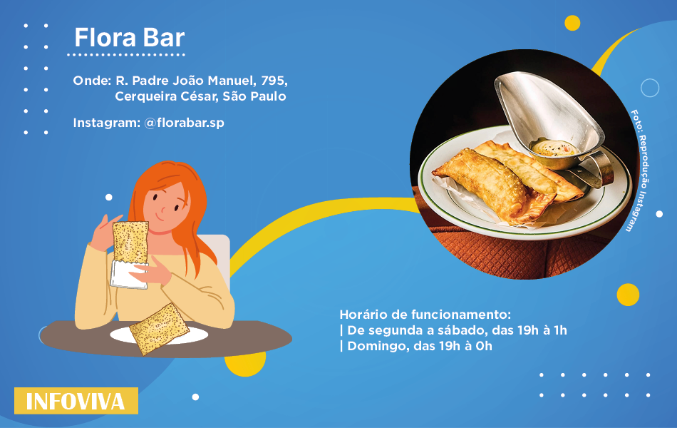 Com uma atmosfera acolhedora, o Flora Bar combina o clima intimista com drinques autorais e uma cozinha que surpreende nos detalhes. Entre as criações do cardápio, um destaque especial é o pastel de ragu de pato.