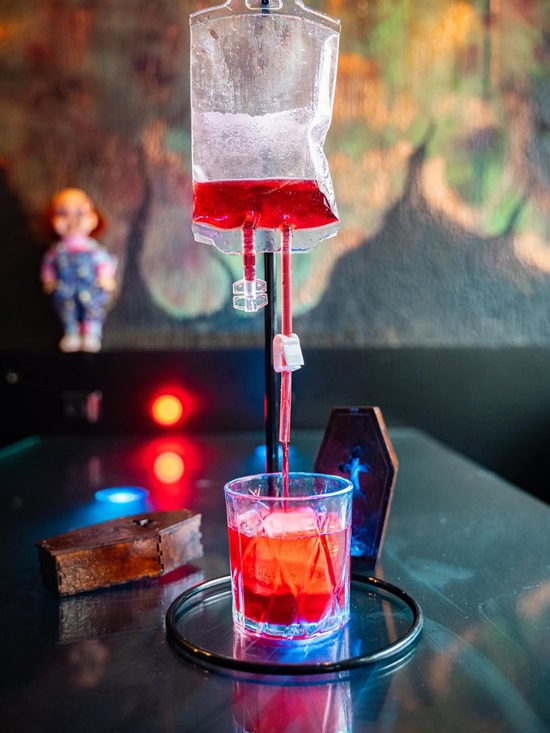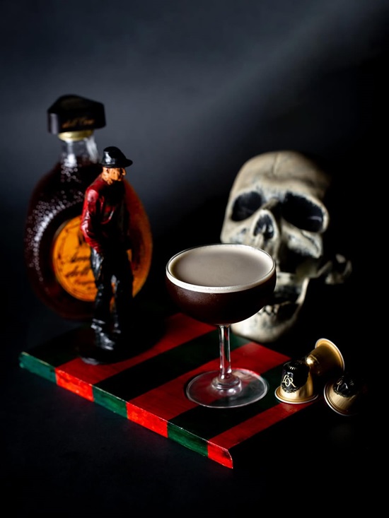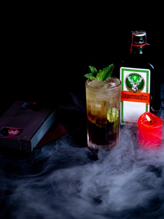 No menu, coquetéis autorais e petiscos com nomes assustadores — como o Sleepwalkers, com café expresso, vodka Belvedere e Amaretto, servido em uma tábua tematizada com Freddy Krueger. O novo drink de Halloween mistura Jägermeister, hortelã, xarope de açúcar e limão, criando uma poção refrescante e “perigosamente viciante”.