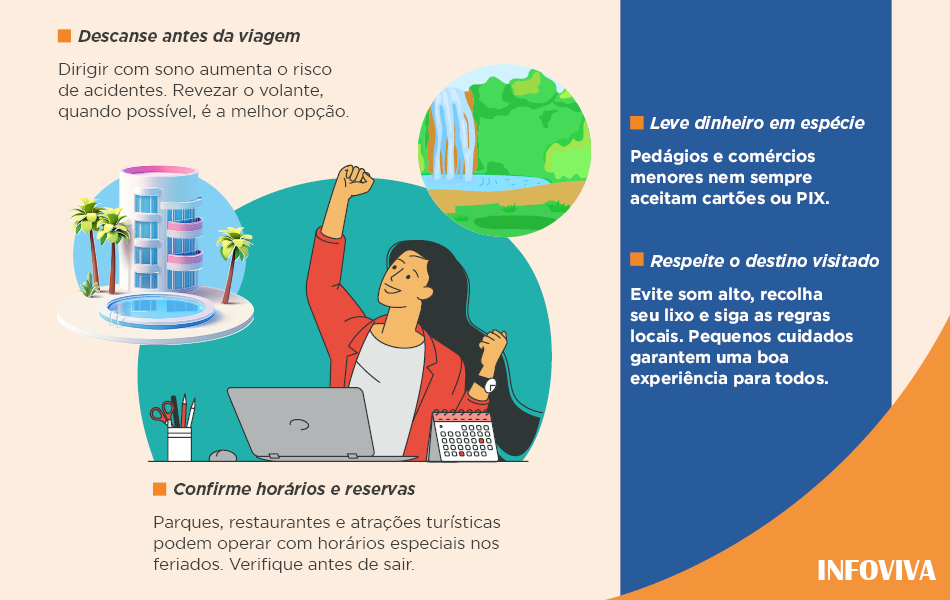 Seja qual for o destino escolhido para aproveitar o feriado, o planejamento é essencial para garantir uma viagem segura e sem dores de cabeça. Confira algumas dicas abaixo: