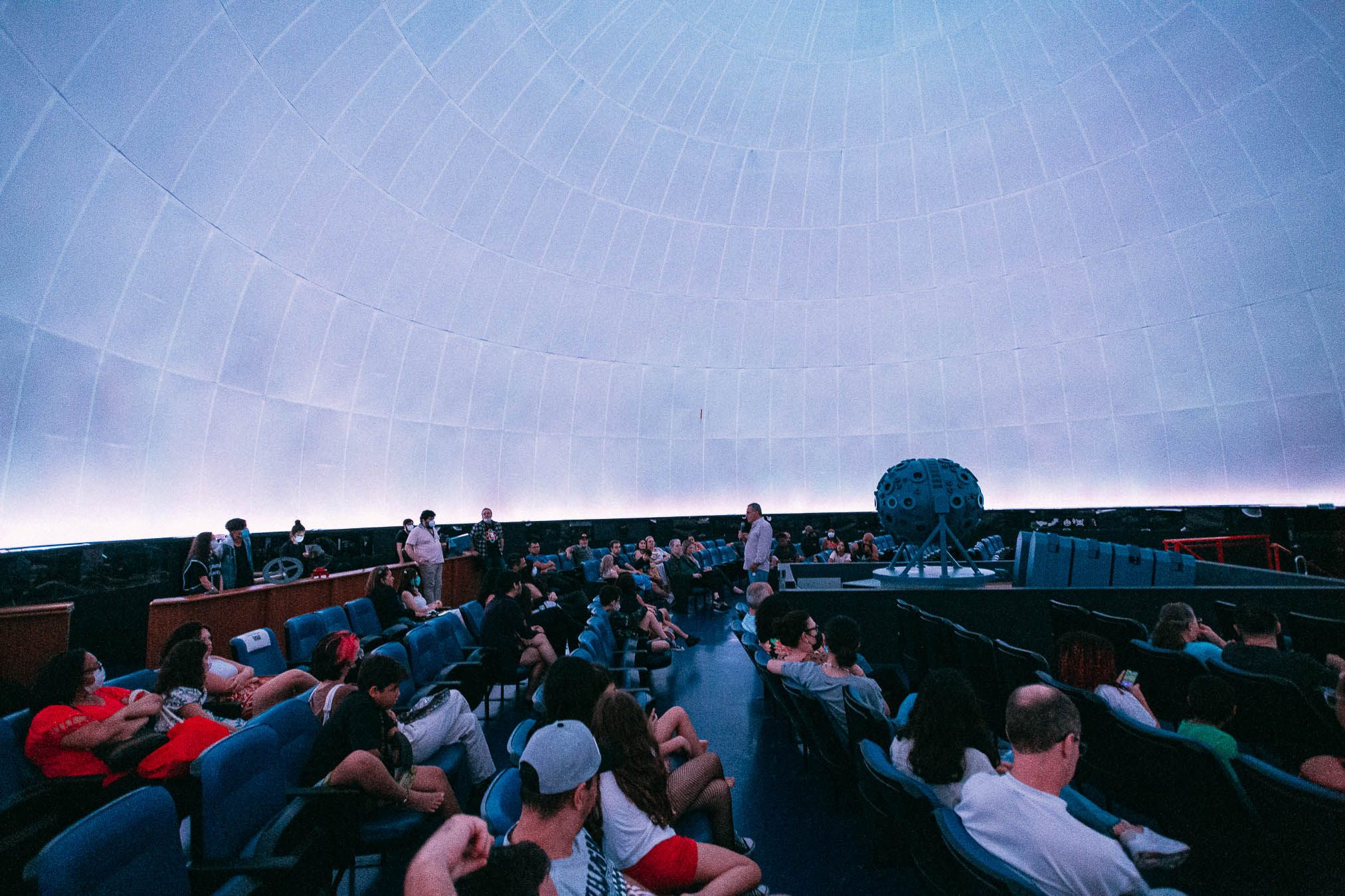 Pessoas acompanha palestra no interior da cúpula do Planetário do Carmo | Foto: Divulgação
