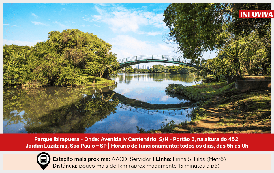 Considerado um dos principais cartões-postais de São Paulo, o Parque do Ibirapuera é um dos locais mais frequentados da cidade para encontros, lazer e atividades ao ar livre, reunindo moradores da capital e visitantes de diversas partes do Brasil e do mundo. Com uma área de aproximadamente 158 hectares, combina amplos espaços verdes, infraestrutura para a prática de esportes e uma rica programação cultural.