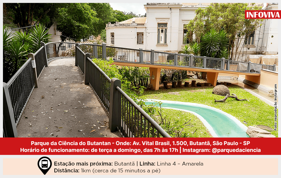 Com uma área de aproximadamente 725 mil metros quadrados, o Parque da Ciência do Instituto Butantan, na zona oeste de São Paulo, oferece diversas atividades interativas e exposições que visam a aproximar o público do conhecimento científico.