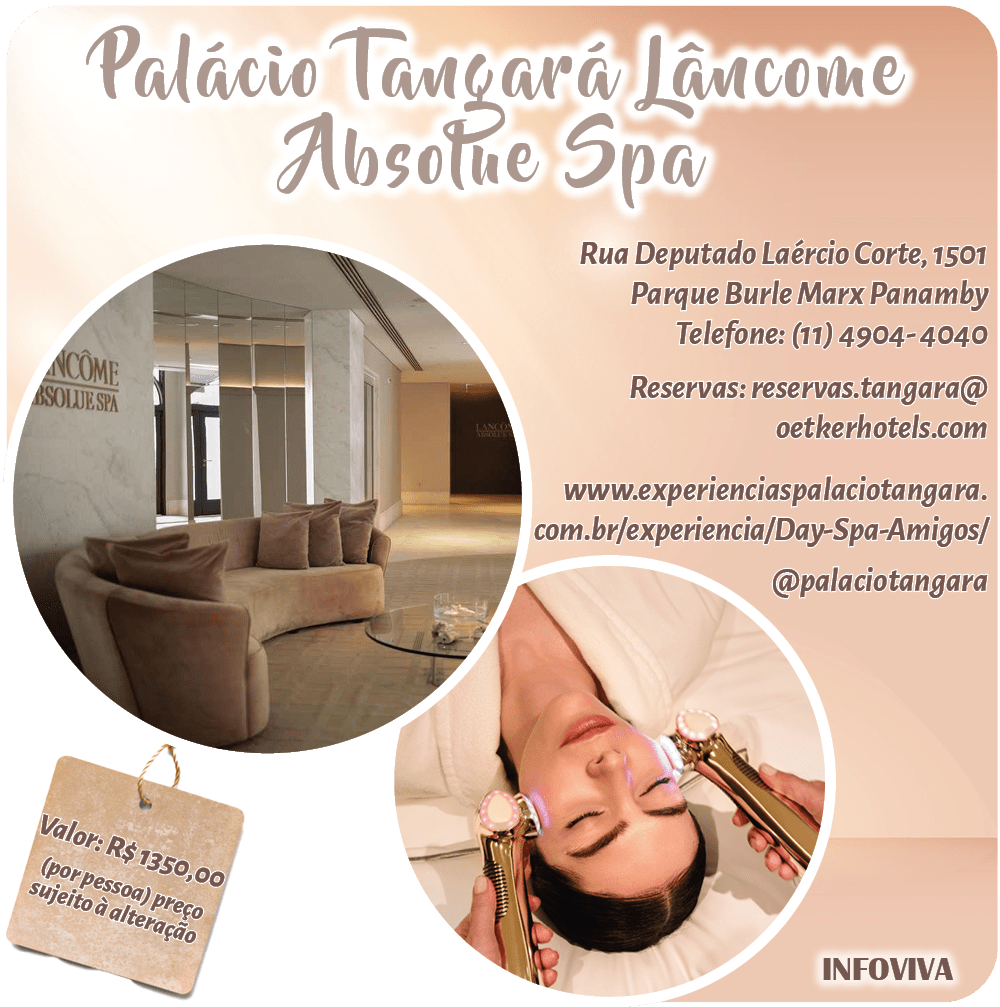 O pacote é um day spa exclusivo para grupos a partir de três pessoas, inclui uma hora de massagem corporal no Lancôme Absolue Spa (à escolha), banho e esfoliação dos pés, acesso a todas as áreas de lazer do hotel (como piscinas climatizadas interna e externa, saunas, jacuzzi, área de relaxamento e vestiários), refeição leve e uma tábua de charcutaria e dois drinks clássicos no restaurante Pateo do Palácio (Negroni, Aperol Spritz, Gin Tônica, Old Fashioned, Fitzgerald ou Caipirinha). O pacote está disponível de terça a sexta-feira das 10h às 19h, exceto feriados, datas especiais e emendas. O spa não funciona às segundas-feiras.