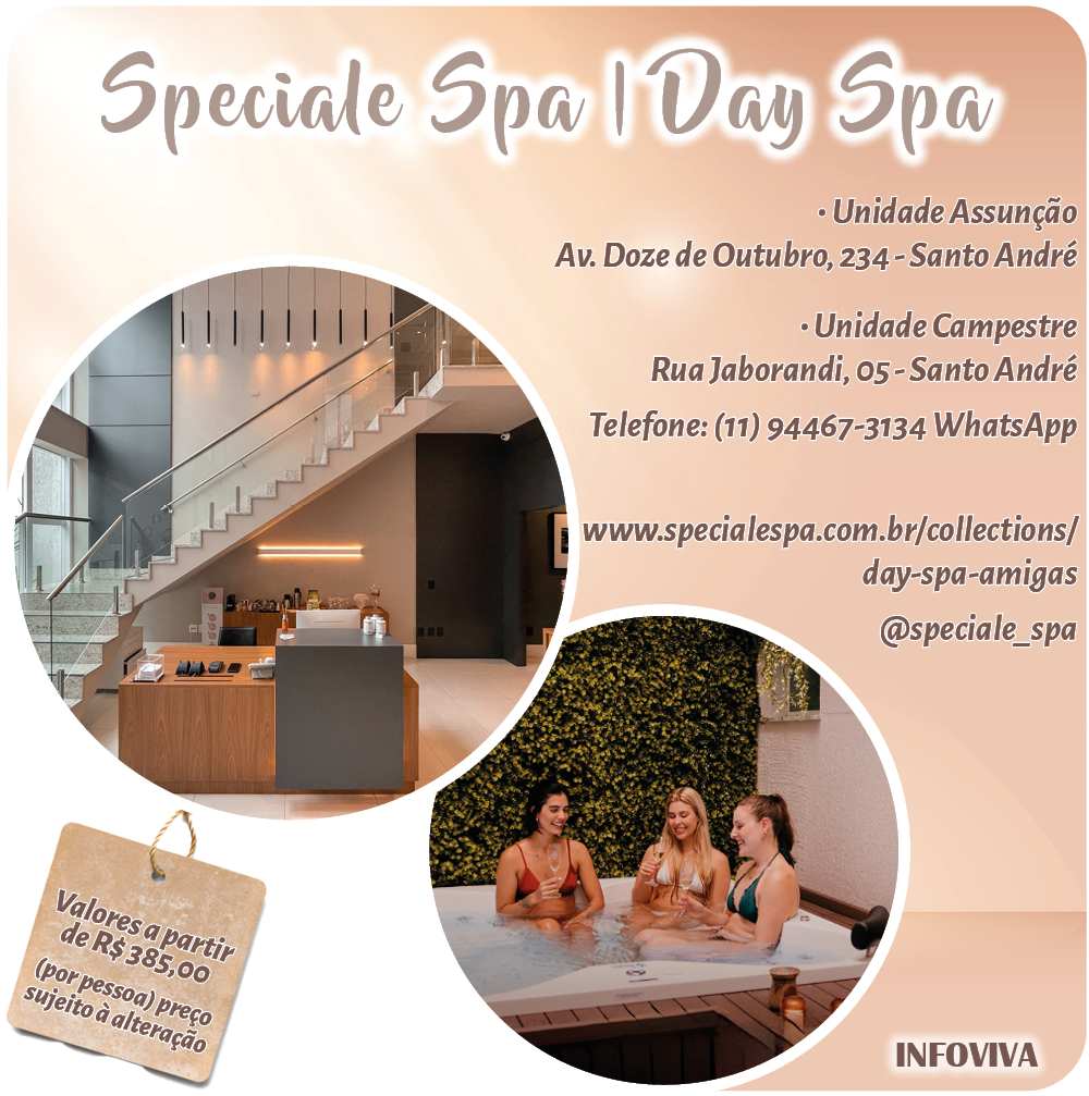 O Speciale Spa Day, localizado em Santo André, no ABC Paulista, é um refúgio dedicado ao bem-estar com day spas, massagens e experiências para quem deseja relaxar, se cuidar e celebrar momentos especiais.