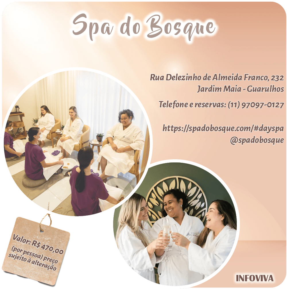 O Spa do Bosque, em Guarulhos (SP), é um refúgio de bem-estar que oferece experiências sensoriais exclusivas de relaxamento e autocuidado. Localizado em uma área tranquila, o espaço proporciona equilíbrio físico e mental, e é ideal para combinar um dia de spa day com as amigas, desfrutando de momentos de relaxamento e diversão.