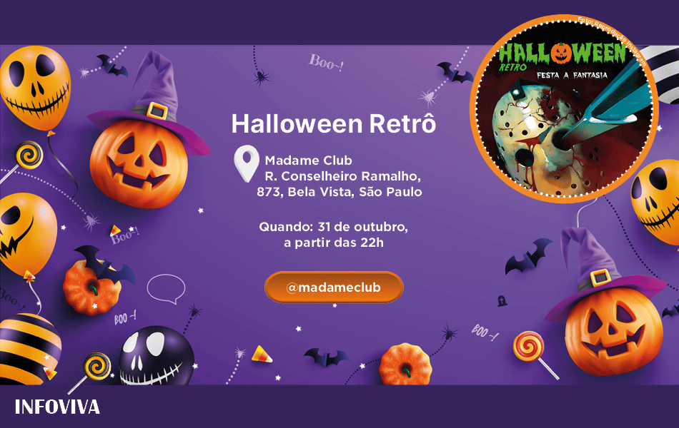 Na próxima sexta-feira, 31 de outubro, o Madame Club recebe o Halloween Retrô 2025, com homenagem ao clássico filme “Sexta-Feira 13”(1980), que completa 45 anos de seu lançamento. A festa promete uma noite de música, nostalgia e fantasia, reunindo fãs de cultura pop e festas temáticas em um dos clubes mais tradicionais da cidade.