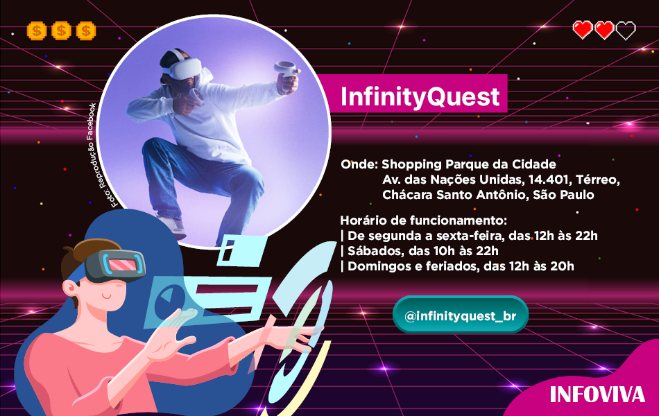 Localizado no shopping Cidade São Paulo, o InfinityQuest oferece mais de 30 experiências imersivas que combinam desafios mentais e interação entre os jogadores.