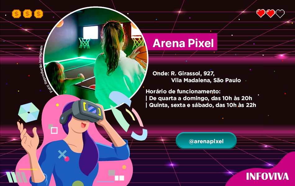 A Arena Pixel, no coração da Vila Madalena, mistura o mundo geek com a mais alta tecnologia de VR. O espaço oferece uma ampla seleção de jogos para todas as idades e gostos, desde os clássicos de tiro e zumbi até jogos mais leves e criativos, ideais para crianças e famílias.