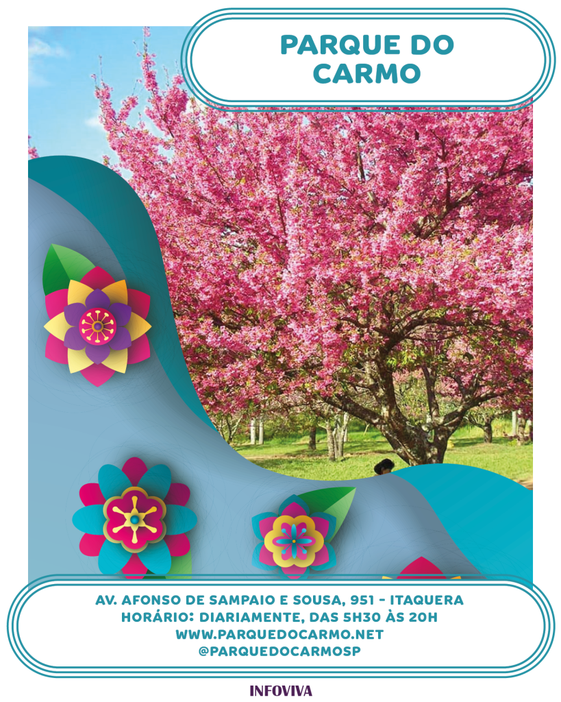 Com uma área de 1,5 milhão de m², o Parque do Carmo é uma excelente opção de passeio para quem gosta de áreas verdes, ar livre e natureza. Com lagos naturais, bosques de eucaliptos o local é uma excelente opção para aproveitar a primavera na cidade. O espaço conta com ciclovia, pista de cooper, playground, churrasqueiras e área de piquenique. Todos os anos, no mês de agosto, acontece a Festa das Cerejeiras, que comemora a florada da árvore símbolo do Japão e deixa o parque todo colorido.