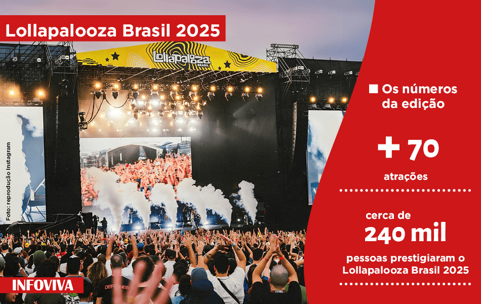 A 12ª edição do “Lollapalooza Brasil”, realizada entre 28 e 30 de março, reuniu cerca de 240 mil pessoas, segundo a organização do festival, com um line-up de mais de 70 atrações.