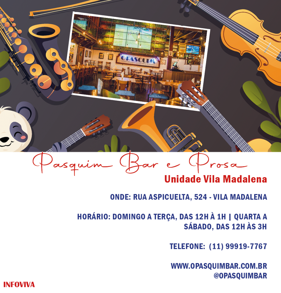 Um local descontraído e muito animado, o Pasquim Bar e Prosa é um dos bares mais tradicionais da cidade. Inspirado no lendário jornal “O Pasquim”, um marco na imprensa brasileira, o bar combina arte, cultura e música. O espaço conta com música ao vivo, rodas de sambas e bandas de MPB (Música Popular Brasileira). Com unidades na Vila Madalena, Zona Norte (Casa Verde) e no Mercado Municipal de São Paulo, a casa é ideal para quem gosta de chope gelado, conversa e muita música boa.