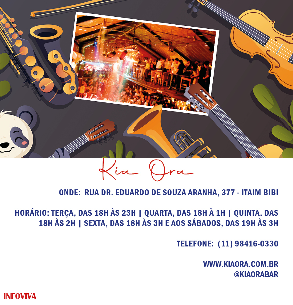 O Kia Ora é um pub musical localizado no bairro do Itaim Bibi que mistura ambiente único e boa música em um só lugar. Com inspiração australiana e neozelandesa, o espaço conta com uma programação focada em música ao vivo, gastronomia e coquetelaria. A casa tamém se destaca pelas apresentações de bandas de rock, com shows que abrangem diferentes vertentes do gênero.