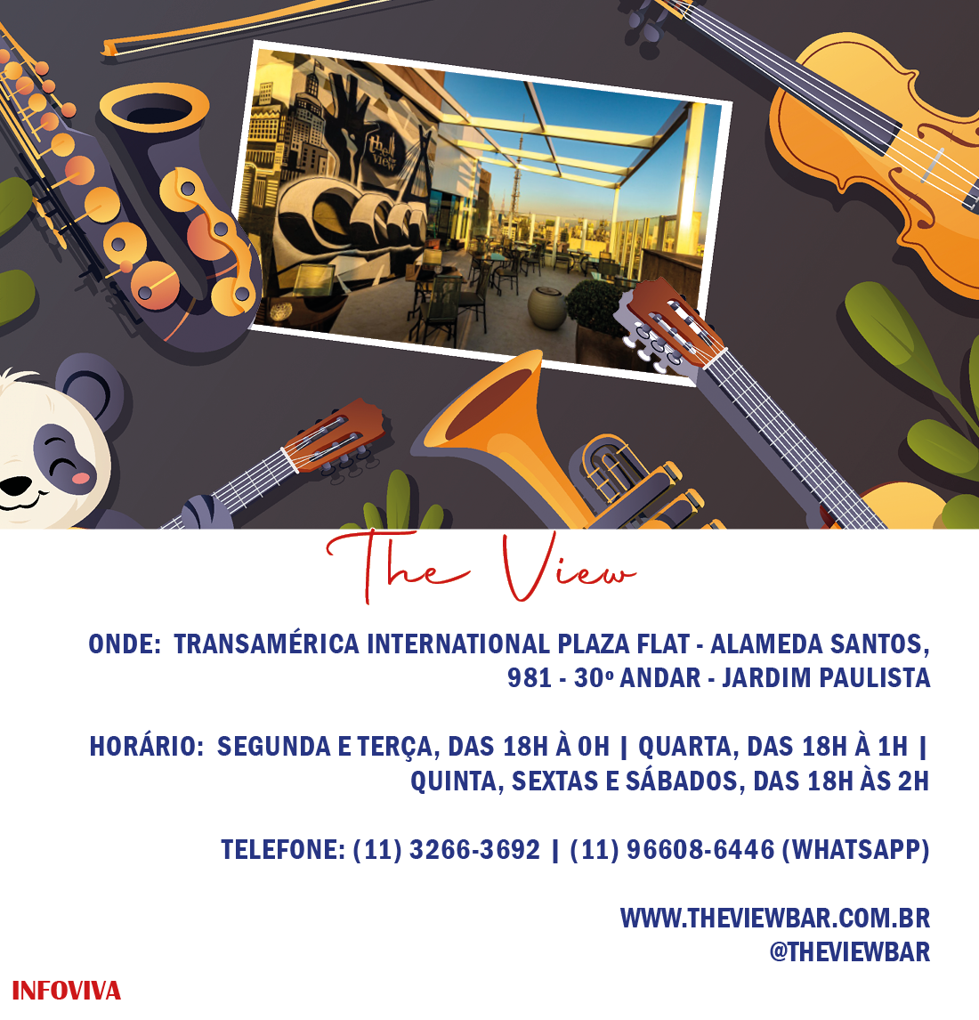 O The View bar e restaurante é um espaço que une a culinária contemporânea, música ao vivo e uma vista incrível da cidade. Localizado no 32º andar do Transamérica International Plaza Flat o espaço oferece uma experiência para quem gosta de um menu completo, muita sofisticação e música ao vivo de qualidade.