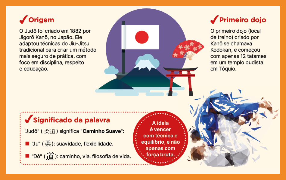 No dia 28 de outubro é celebrado o Dia Mundial do Judô, data escolhida em homenagem ao nascimento do japonês Jigoro, criador da modalidade. Mais do que uma arte marcial, o judô é uma filosofia de vida que busca o aperfeiçoamento físico e espiritual do ser humano, sendo um verdadeiro “caminho suave”, conforme a tradução literal de seu nome em japonês.